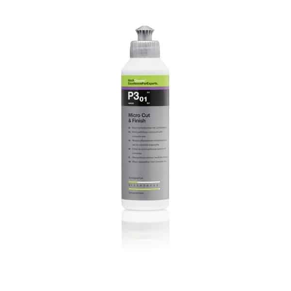 Micro Cut & Finish P3.01 е най-новото поколение микро и финишна полир паста за постоянно отстраняване на ивици, холограми, фини драскотини и шлифовъчни марки до размер на зърното P3000 на всички видове лак (включително устойчиви на надраскване), Благодарение на използваните в състава хомогенни абразивни материали се създава дълготрайна лъскава повърхност. Холограмите и малките драскотини се отстраняват механично, без следи, като същевременно запечатва лака за перфектен гланц и гладкост.